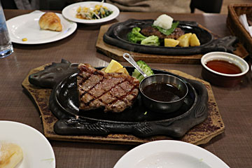 内房線、総武線で、西船橋。JRを終了し、東京メトロ東西線で東陽町、歩いて10分。ホテル前のステーキフォルクスで夕食。サーロインステーキ150g。