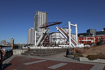 海に隣接しています。船のドックと跳ね上げ橋。