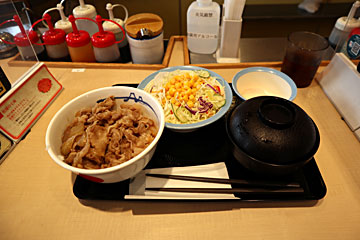 狭山市駅市民交流センターでも、マンホールカードをもらいました。狭山市の花・木・鳥のデザイン。狭山市駅前の松屋で、牛めしのランチ。