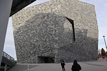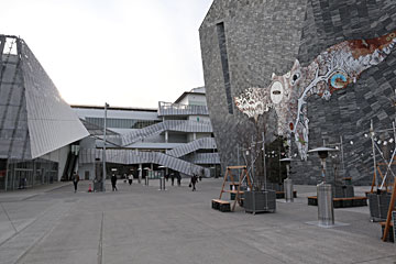 角川武蔵野ミュージアムに入ります。こちら側が入り口、巨大で窓がほとんど無い変わった建物です。