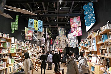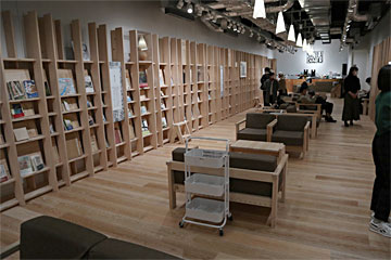 中に入ると本がいっぱい。松岡正剛氏の監修のもと、世界を読み解くための9つの文脈によって25,000冊の本が50メートルの通りに配架されているのだそう。
