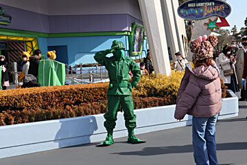 アストロブラスターの前にいたグリーンアーミーメン。ソーシャルディスタンスを取る必要があり、いつものように並んで写真が撮れません。