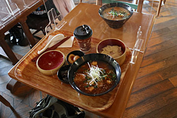 チャイナボイジャーでランチ。「豚角煮とマーボー豆腐のあんかけ麺、蒸し餃子」。