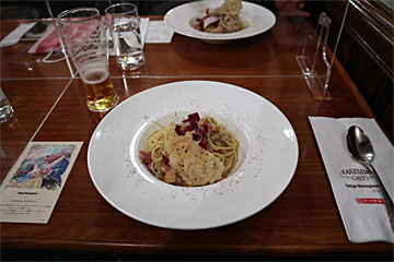 夕食は、イーストサイド・カフェを予約していました。スペシャルセット(サラダ、パン、スパゲティ、デザート)+生ビール。