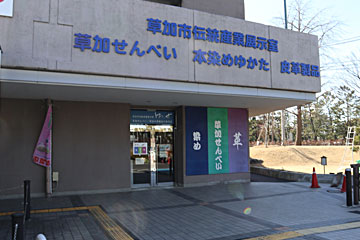 草加市では、「草加市文化会館」内の伝統産業展示室『ぱりっせ』で「百代橋と松並木」の、近くの草加宿芭蕉庵で「パリポリくん」のマンホールカードをもらいました。『ぱりっせ』では、草加せんべい・そうかの革製品を直売していました。
