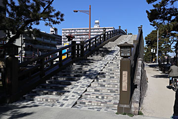これが「百代橋」。横から見るとアーチ橋のように見えますが、自転車でも上がれるようになっていました。