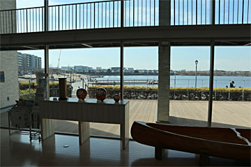 内部。「シラコバト」のマンホールカードをもらいました。隣は大きなレイク(調整池)、家族連れが池の周りで遊んでいました。