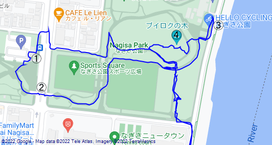 実物のマンホールは、なぎさ公園の東側、旧江戸川の横の道の歩道にありました。