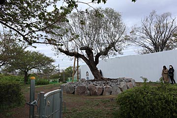 なぎさ公園の高台に植わっている「ブイロクの木」。V6が植えたオリーブの木です。朝早かったのに、数組の女性がいらっしゃいました。警備員さんもいました。