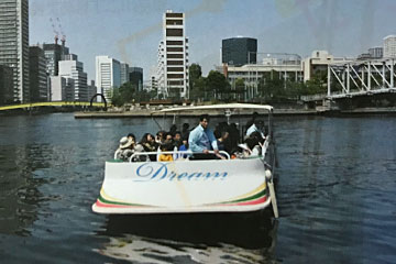 天王洲キャナルフェスの会場は2つあるようですが、マンホールカードは、「東品川2-3開放広場」で配っているというので、開放広場にもらいに行きました。会場に入ってすぐに配っているブースはありました。開放広場の会場では古物市のマーケットやキッチンカーによるフードサービスなどがありました。会場は西側にもう一つあり、その間をつなぐ渡し舟(パンフレットより)が出ているようでしたが、船着き場で聞いたみたところ、今はお昼休みで次の出発は45分後とのことだったのであきらめました。