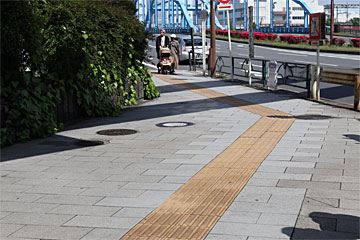 川沿いがずーっと遊歩道になっています。左手前のブロックに書かれた柱番号は63。