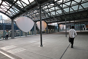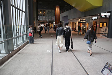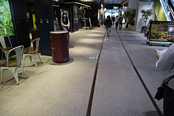 「渋谷ストリーム」は、東横線が地上を走っていたところに建っており、床に埋まっているレールは実際に東急線沿線で使用していたレール。線路際の番号(07)は、東横線が高架だった頃の柱番号だそう。