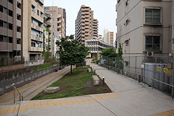 地上に降りてきました。左側は渋谷川。