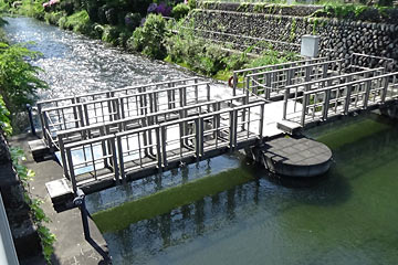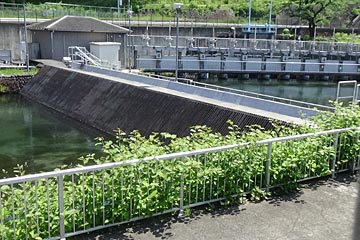 玉川上水側。奥が第1水門。中央が小吐水門。