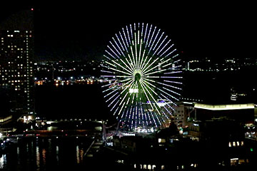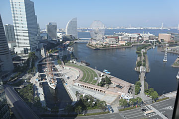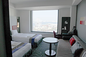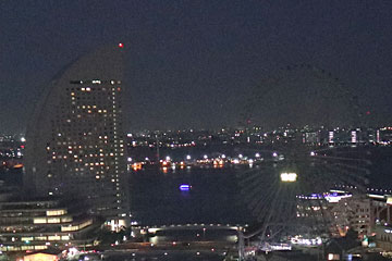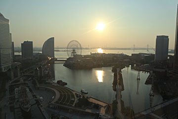 窓の外。海と観覧車(先日乗った「コスモクロック21」)が眼下に見える、眺望のすぱらしい部屋。