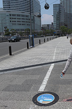 宿をチェックアウトして、昨日、桜木町駅の観光案内所でもらった「かばのだいちゃんのマンホールカード」の実際のマンホールを、北仲橋のたもとに見に行きました。