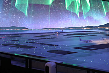 飛行機が関空から飛び立つところ。反対側の滑走路に向こう側の穴から出て降りてきて、飛び立つときは、こちら側の滑走路から飛び立ち、穴は自動で開閉していました。