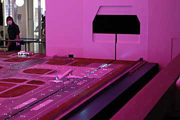 倉庫のような建物に入ると、トンネルがあり、自分たちも1/80に縮小します。3Fが展示になっていて、6つのコーナーがあります。ここでは、自分の姿を3D撮影して、3Dプリンタで自分の分身を作って、スモールワールズに住まわせるとか(リンク)、3D撮影して、スマホアプリで自分のアバターを自由に動かしたり、とかもできるようです(リンク)。