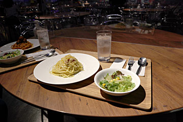 2Fのレストラン「WHITE ART」でランチ。カルボナーラパスタ・サラダ付き¥1,200