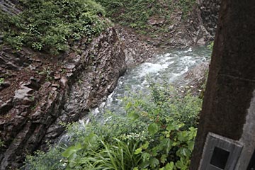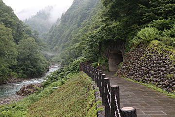 左側は清津川、右側のトンネルが清津峡入口