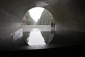 薄く水が張ってあり、渓谷が水もに映ります。