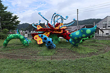 駅前のよく見えるところにあった草間彌生さんの「花咲ける妻有」。妻有(つまり)はこちら(十日町市、津南町)の地名です。