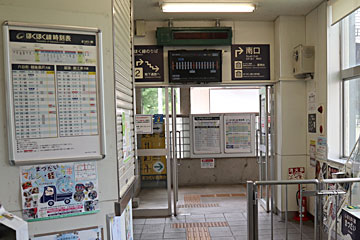 ここは、道の駅ですが、隣は ほくほく線の「まつだい」駅です。駅を覗いてみました。左側に時刻表がありますが、上下線とも日に19本です。