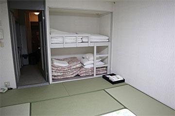 押し入れが2段ベッドに改造してありました。日頃2段ベッドで寝ていないお子さんは大喜びかもしれません。お布団敷きはセルフサービス。