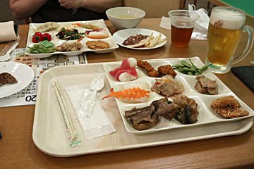 今回のプランは夕朝食付きです。18:30から別館1Fのレストラン苗場山でバイキングの夕食。生ビール¥500