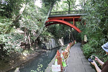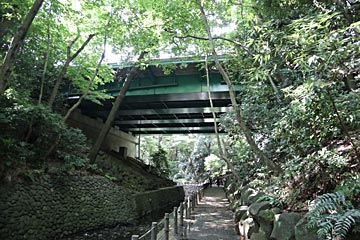 また反対に渡る低い橋。奥にも高い橋。渡った先には、等々力渓谷横穴墓群があり、あとで見に行きます。