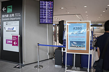 集合場所は、成田空港第1ターミナル南ウィング1階ANA国内線チェックインカウンター。隣はピーチのカウンター。