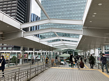 大崎駅。駅を上がった こ線橋は「夢さん橋ビューロード」。通路にお店が出ていました。