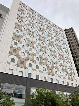 大崎駅近くのひふみ公園で、反対側のビル(ダイワロイネットホテル)の塗装を見ます