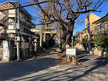 旧田端村の鎮守様、まっすぐな参道が続いています