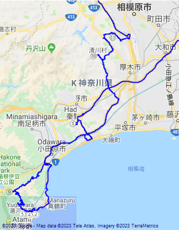 箱根駅伝復路で国道1号が渡れず(おまわりさんに20~30分は待つと言われた)、二宮ICから小田原厚木道路に乗って湯河原に来ました。