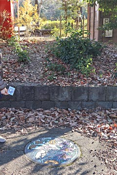 実物のカラーマンホールは、近くの中井中央公園横の歩道にありました。