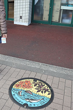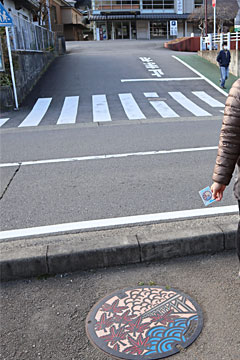 実物のカラーマンホールは、「道の駅清川」の前にありました。