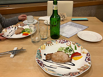 四季倶楽部の夕食はバイキングではなく、コース料理。以前は一人の人がフロントから給仕まですべてやっている感じで大変そうでしたが、今回は給仕の人だけで3人いらっしゃいました。
