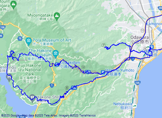 小田原駅から星の王子様ミュージアムに行こうと思い、GoogleMapに行先を設定して道案内してもらったところ「こどもの森 わんぱくらんど」の前の道を行きましたが、途中で林道(足柄幹線林道)は冬季通行止めになっていて、小田原に引き返しました。それからは、カーナビの指示に従いました。箱根新道は事故が2つあってすごく混んでいて、箱根湯本の手前で左折し、旧道経由で向かいましたが、結局、星の王子様ミュージアムに行くのはあきらめ(3/31の閉園が近いのですごく混んでいたそう)、直接保養所に向かいました。