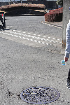 カラーではありませんが、アクアクリーンセンターの前に、「大山、ききょう、やまどり」のマンホールがありました。