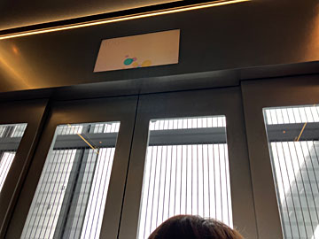 展望回廊に上がる展望シャトル(エレベータ)はシースルーで2基