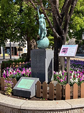 駅前のスタチューは「平和の誓い」。大井町駅前にあるもののミニチュア版のようです。