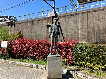 三河島駅横の広場に立つスタチューは、浦山一雄氏の「BLACK UNIFORM」