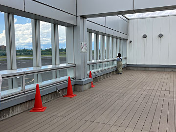 2Fは屋内と屋外の展望デッキ。こちらは屋外ですが、ガラスがあります。屋根は無いので、雨が降って来ます。