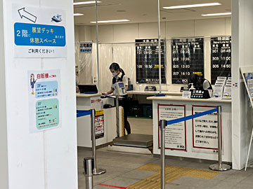 ロビー。大島、新島、神津島、あと見えませんが三宅島行きがあり、帰ってくる飛行機もあり、思ったより(少なくとも茨城空港よりは)頻繁に、飛行機が離着陸していました。
