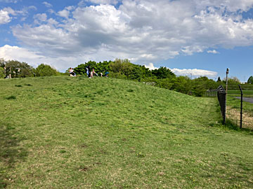 調布飛行場の道路を隔てて反対側にあった、低くなったところは、洪水の調整池。野川より低くなっていて、あふれたらここに貯める構造の模様。普段はグラウンドとして使っています。