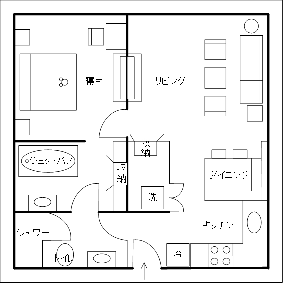 その手前にトイレとシャワールームがあります
