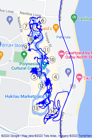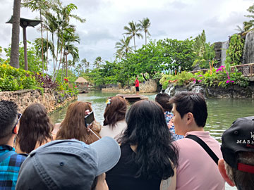 ポリネシアンカルチャーセンターの中心はラグーン(川)になっており、入り口側(南)と、奥の北側をカヌーで移動できます。