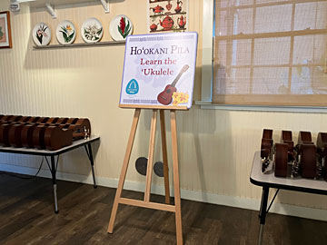 16時のウクレレ教室に予約せずに行ったら、アウラニに来る前からアプリで予約が必要な人気教室で、日本語の分かるスタッフさんにお願いして17時の回に(無理やり?)入れてもらいました。C、G、Am、Fの4つのコードを教えてもらい、演奏できました。