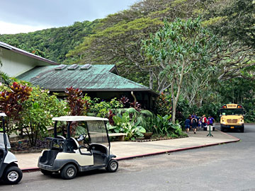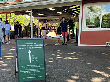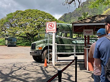 この日は、ジュラシックパークなど、色々な映画のロケ地として使われている、クアロア・ランチに来ました。前日「ハリウッドムービーサイトツアー(90分)」をWEB予約して来ており、予約の画面を見せて券をもらいます。
